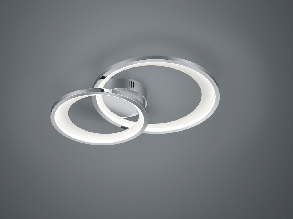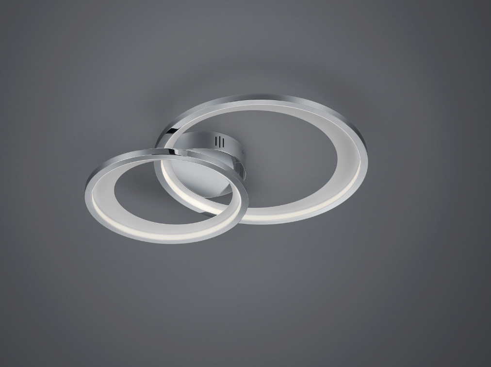 Een moderne plafondlamp met van het merk Trio. Deze plafonnière is gemaakt van metaal en uitgevoerd in de kleur wit en chroom. Dankzij zijn design met twee ronde ringen zal deze lamp een prachtstuk zijn in uw interieur. De lamp kan goed worden toegepast in verschillende binnenruimtes, zoals bijvoorbeeld in de slaapkamer, woonkamer of ruime hal als basisverlichting. Deze plafondlamp wordt inclusief lichtbron geleverd, te weten een geïntegreerde SMD-LED lamp met een wattage van 29W. De lichtsterkte van deze armatuur kan via de normale lichtschakelaar op 3 verschillende niveaus ingesteld worden ( SWITCH-dimmer ). Deze lamp is enkel en alleen voor plafondmontage geschikt. Let wel, deze plafondlamp dient op een normale lichtschakelaar geplaatst te worden en is niet geschikt voor een externe dimmer.