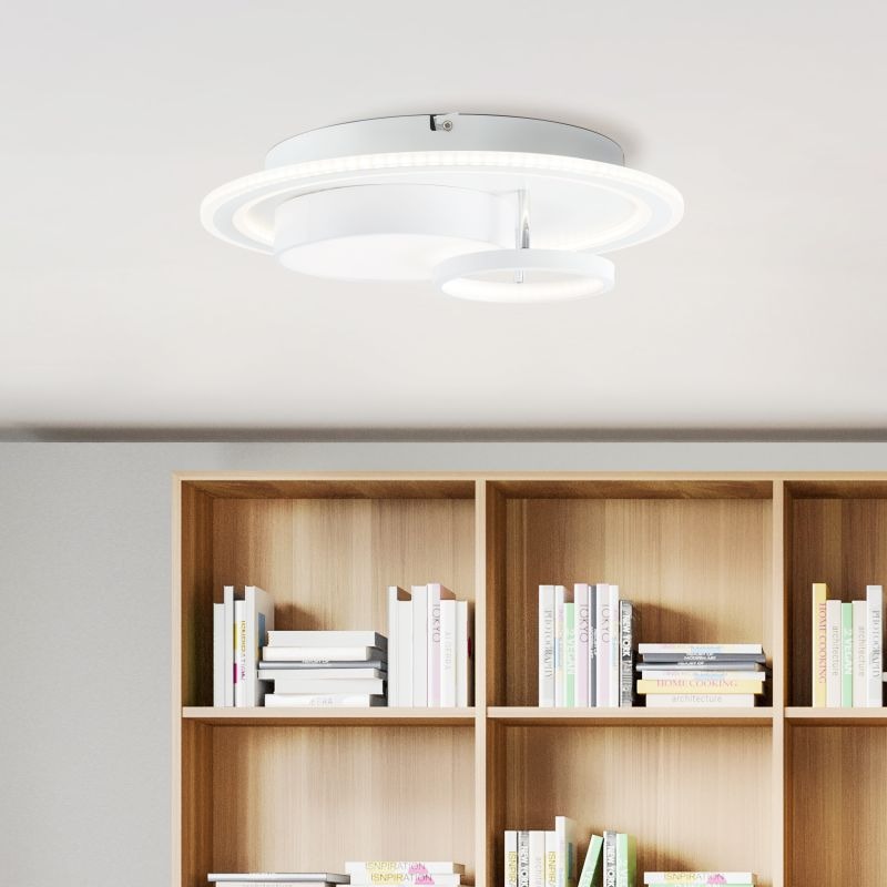 Een mooie plafondlamp uit de collectie van het merk Brilliant gemaakt van metaal en kunststof in een witte kleur. De lamp heeft een mooie stijlvolle en simplistische uitstraling en staat goed in de hal, slaapkamer of woonkamer. De lamp wordt geleverd inclusief geïntegreerde LED lichtbron die een wattage heeft van 40W. De lamp heeft een aangenaam warm wit licht en heeft een overal toepasbaar tijdloos design. Bij deze lamp wordt ook een afstandsbediening geleverd waarmee verschillende functies kunnen worden ingesteld zoals de lamp dimmen en de kleurtemperatuur aanpassen van koel naar warm wit licht.