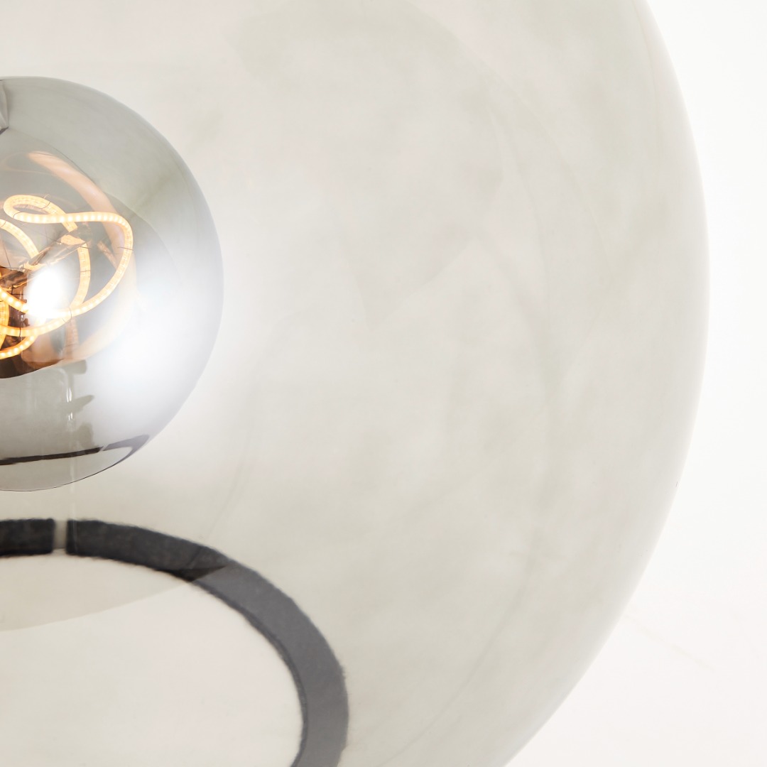 Een prachtige tafellamp uit de collectie van Brilliant met een zwart onderstel en zwart smoke glas in bolvorm. De lichtbron wordt niet meegeleverd en de lamp heeft een E27 fitting geschikt voor max. 25W. Doordat je de lichtbron goed ziet zitten, leuk je deze lamp op met een statement lichtbron die gezien mag worden! De lamp bedien je heel eenvoudig met de snoerschakelaar. Staat bijvoorbeeld erg leuk op een sidetable of dressoir maar ook op een nachtkastje zorgt de lamp voor mooi licht.