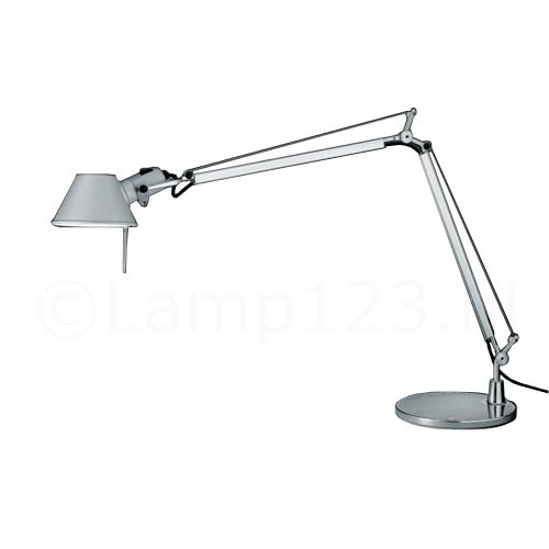 De Tolomeo tavolo is een moderne tafellamp op een stabiele verchroomde voet waaraan een 2-delige draaibare arm is bevestigd. De armen zijn gemaakt van gepolijst aluminium en voorzien van 2 veersystemen. De geanodiseerde aluminium kap met geïntegreerde aan-uit schakelaar is in alle richtingen verstelbaar en geeft een direct licht. De Tolomeo tavolo kan goed gebruikt worden op een bureau of werktafel. Fabrikant/Model: Artemide Tolomeo Tavolo. Deze lamp is beschikbaar in drie verschillende kleuren; Aluminium, Wit en Zwart. (zie andere advertenties voor een andere kleur)