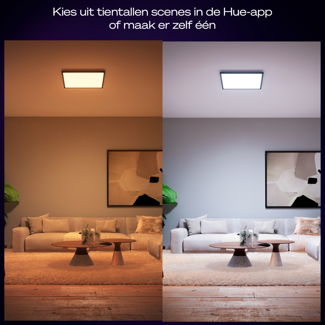 Een mooie plafondlamp die een goede toevoeging is aan uw interieur, bijvoorbeeld in uw woonkamer of slaapkamer en eenvoudig is toe te voegen aan uw bestaande Hue systeem. De lamp heeft een elegante uitstraling waardoor hij overal toepasbaar is. Wordt wakker met helder, koelwit licht en sluit de dag af met ontspannend warmwit licht. Het Hue systeem is makkelijk te installeren zonder ingewikkeld installatiewerk. Deze lamp beschikt ook over Bluetooth en hiermee kunt u de lamp direct bedienen via de Bluetooth app op uw telefoon of tablet. Wil je genieten van de maximale mogelijkheden van Hue, zoals het personaliseren van lichtscènes, routines en timers? Verbind de lamp dan met de apart verkrijgbare Philips Hue Bridge en schaf een van de vele handige bediendingsaccessoires toe.