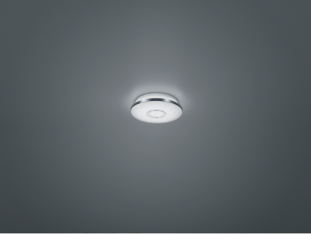 De OSAKA plafondlamp heeft een uniek ontwerp dat zorgt voor de perfecte verlichting. Het moderne ontwerp maakt de plafonnière snel tot een blikvanger in uw kamer. Met een hoogte van slechts 5 cm en een diameter van 21 cm heeft de lamp een strakke en ronde vorm. De ingebouwde dimmer biedt de mogelijkheid om het licht in drie verschillende standen te dimmen met de ingebouwde schakeldimmer . Deze plafondlamp is geschikt voor verschillende ruimtes als stijlvolle verlichting in gangen, hallen of in uw woonkamer. De combinatie van de chroomkleurige behuizing en de witte kap maakt het makkelijk om de lamp met andere kleuren in uw interieur te combineren. Bovendien is de moderne Osaka plafondlamp veelzijdig inzetbaar door zijn mooie sterreneffect en kan deze ook als wandlamp gebruikt worden. Met de meegeleverde afstandsbediening kunt u het sterreneffect zo nodig dimmen tot een normaal warm wit licht.