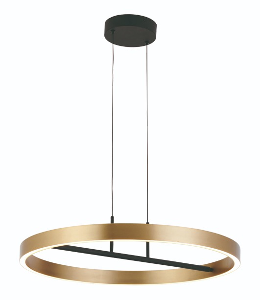 Deze prachtige hanglamp van Freelight uit de Livello collectie straalt elegantie uit. De ronde lamp heeft een diameter van 60 cm en heeft een ronde ring met een geïntegreerde ledstrip. Deze lichtbron is warm wit van kleur (2700K) en is tevens dimbaar via een externe wanddimmer. Zo kan je het licht aanpassen naar wens. Door de goude kleur met zwarte accenten en het tijdloze design kan deze lamp overal wel toegepast worden en zal de ruimte zeker verrijken. De hanglamp is ook beschikbaar in een kleinere maat of volledig zwarte kleur.