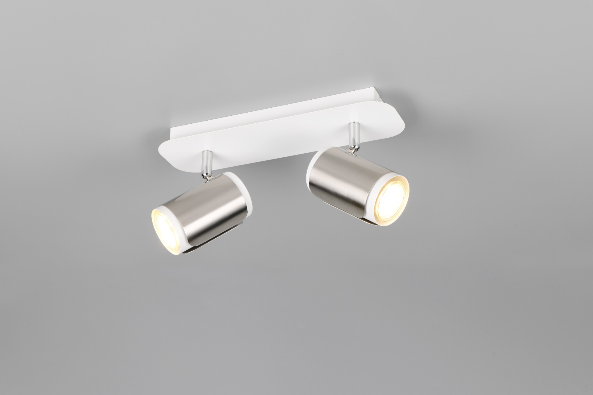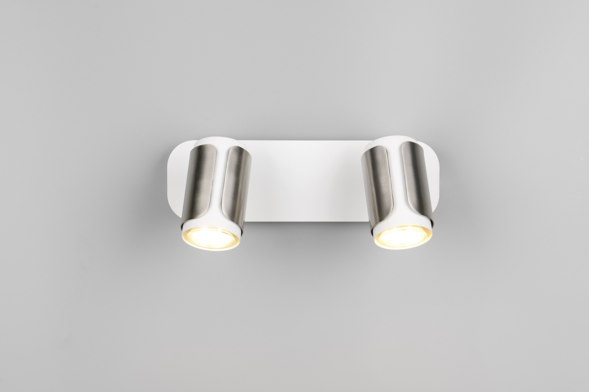 Een hoogwaardige opbouwspot van het Duitse verlichtingsmerk Trio. De combinatie van mat nikkel met wit metaal geeft de spot een moderne en stijlvolle uitstraling. Deze opbouwspot is ideaal te gebruiken als algemene verlichting. Dankzij de draaibare spots kunnen de lichtbundels eenvoudig in de gewenste richting worden gericht. De opbouwspot werkt met twee GU10-lichtbronnen, die niet zijn meegeleverd maar eenvoudig los bij te bestellen zijn. Wij adviseren het gebruik van LED-spots met een maximaal vermogen van 10 watt. Bij de advertentie kunt u gemakkelijk geschikte lichtbronnen toevoegen. Deze lamp heeft een IP20-classificatie, wat betekent dat hij stofdicht is en geschikt voor gebruik binnenshuis. Let op: de lamp is niet beschermd tegen vocht.