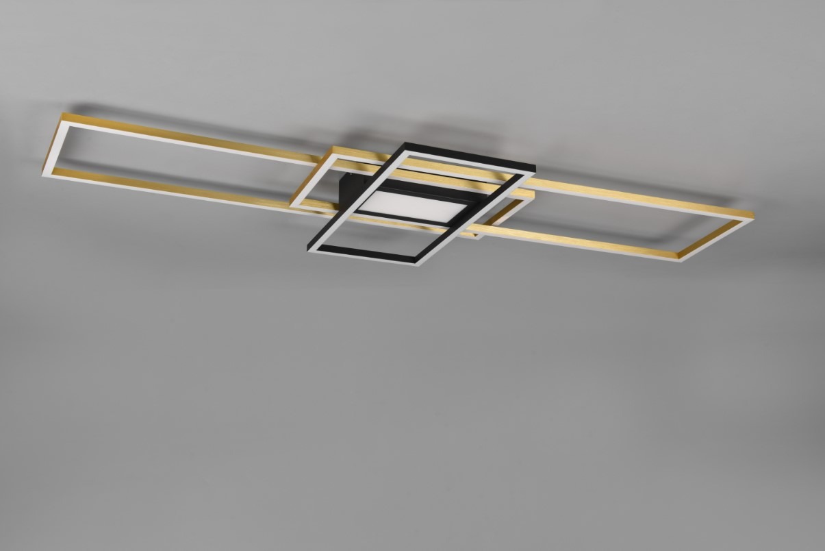 Een moderne plafondlamp van het merk Trio welke ook geschikt is voor wandmontage. Deze plafonnière met luxe uitstraling is gemaakt van metaal en uitgevoerd in de kleur messing mat. Deze plafondlamp wordt inclusief geïntegreerde SMD-LED lamp met een wattage van 60W geleverd. De lichtsterkte van deze armatuur kan door de geïntegreerde dimmer traploos gedimd worden. De lichtkleur (lichttemperatuur in graden Kelvin) is op verschillende niveaus instelbaar. Dit alles is gemakkelijk in te stellen met behulp van de meegeleverde afstandsbediening. Deze armatuur heeft een nachtlampfunctie en een geheugenfunctie (dit wil zeggen dat de laatste instelling opgeslagen en gebruikt wordt wanneer de lamp opnieuw ingeschakeld wordt). Let wel, deze plafondlamp dient op een normale lichtschakelaar geplaatst te worden en is niet geschikt voor een externe dimmer.