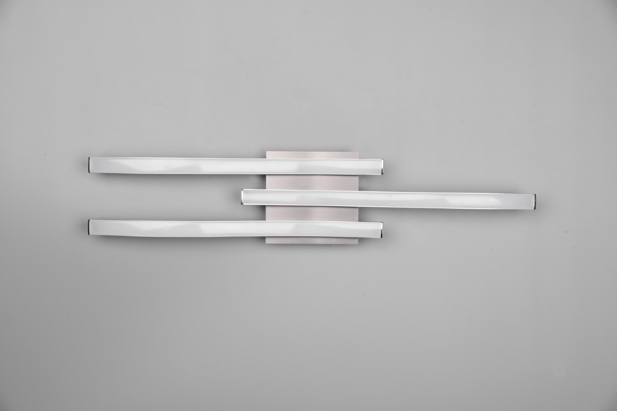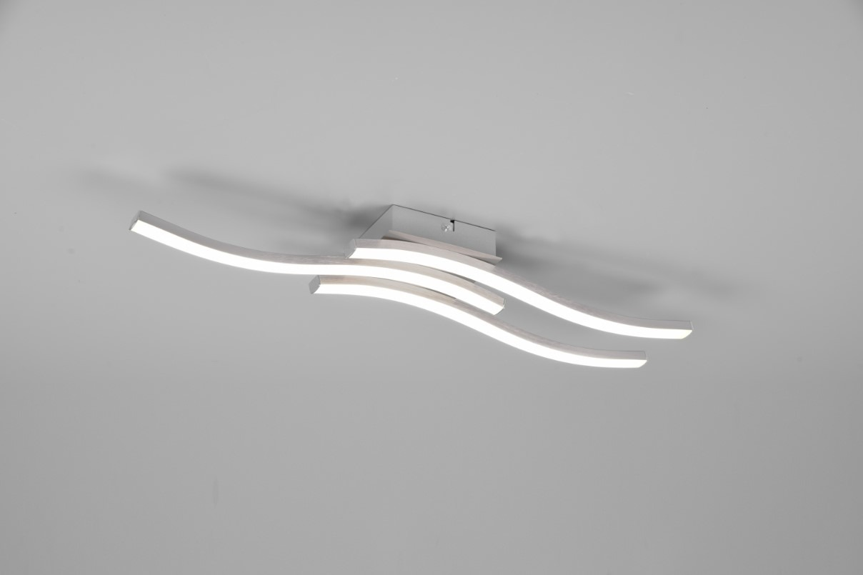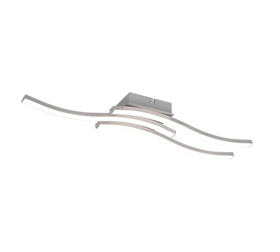 Plafonnière Route heeft een modern, elegant gebogen design. Deze plafondlamp verfraait elke woonruimte. De drie lichtpunten stralen zacht niet-verblindend licht uit. De lichtkleur van de lichtbronnen bedraagt 4.000 Kelvin, het effect hiervan wordt omschreven als neutraal wit. De plafondlamp is gemaakt van nikkelkleurig metaal en heeft een matte afwerking. Let wel, deze plafondlamp dient op een normale lichtschakelaar geplaatst te worden en is niet geschikt voor bediening door een externe dimmer.