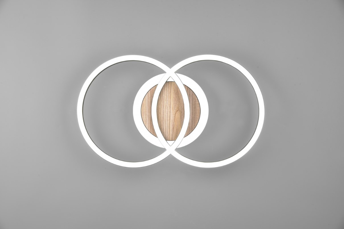 Deze plafonnière van Trio met ronde vormen is voor zowel plafond- als wandmontage geschikt. Deze armatuur is gemaakt van MDF en metaal. De krachtige geïntegreerde LED lamp heeft een wattage van 36W en kan met de meegeleverde afstandsbediening traploos gedimd worden. De lichtkleur (lichttemperatuur in graden Kelvin) is eveneens instelbaar. Met de conventionele lichtschakelaar kan gekozen worden voor één van de drie lichtsterkteniveaus (25, 50 of 100%). Nachtelijke oriëntatie in de ruimte is mogelijk dankzij de handige nachtlampfunctie. Let wel, deze plafondlamp dient op een normale lichtschakelaar geplaatst te worden en is niet geschikt voor een externe dimmer.