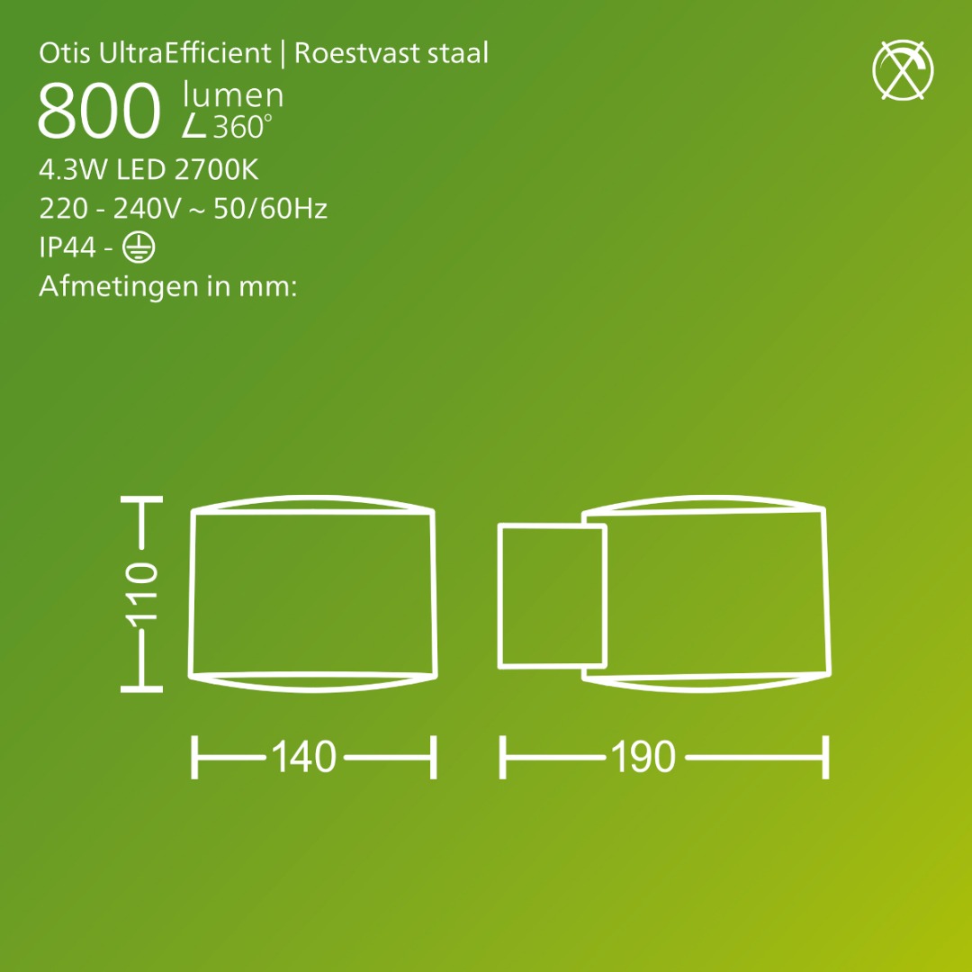 Een mooie wandlamp van de Outdoor collectie van Philips die zowel uit als aan een plaatje is om te zien. Het armatuur is gemaak van rvs en met een IP waarde van 44 geschikt voor diverse weeromstandigheden. Met een geïntegreerde led lichtbron van maar 4,3W is de lamp ook nog eens heel zuinig! Leuk om te combineren met de vloerlamp uit dezelfde serie voor één geheel.