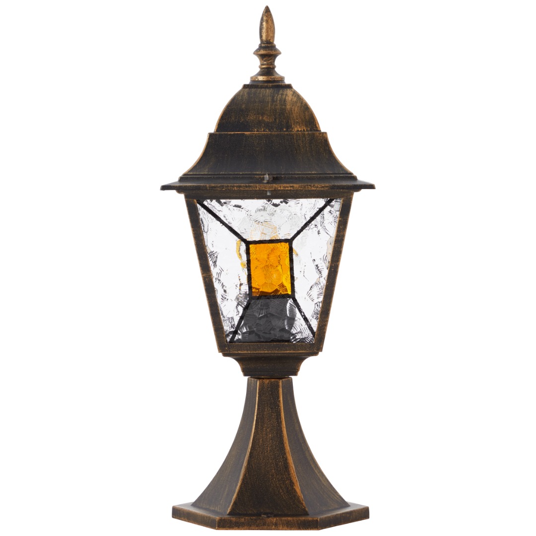 Een prachtige vloerlamp van Brilliant uit de Janel collectie. De klassieke vloerlamp in een zwart-gouden kleur combineert een prachtig glas in lood effect in de glazen en geeft daardoor een prachtig lichteffect af. Binnen de Janel serie zijn diverse andere lampen te vinden die je met elkaar kunt combineren om één geheel te creëren. De lamp heeft een E27 fitting geschikt voor lichtbronnen tot max. 60W en is door zijn IP44 bestendig tegen diverse weersomstandigheden.