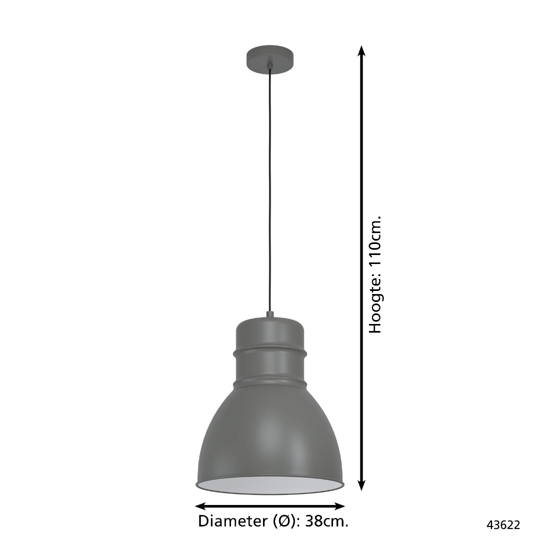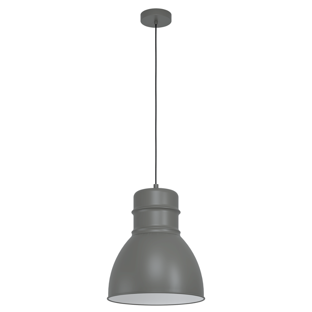 Een hanglamp uit de hanglampen collectie van het merk Eglo. De lamp is gemaakt van staal en heeft een grijze kleur met een witte binnenkant. De lamp wordt geleverd exclusief lichtbron geschikt voor max. 60W. Deze lamp kan goed geplaatst worden in de woonkamer of eetkamer boven de eettafel bijvoorbeeld. De lamp heeft een simplistische elegante uitstraling en kan daardoor goed toegepast worden in modern interieur maar ook industrieël.