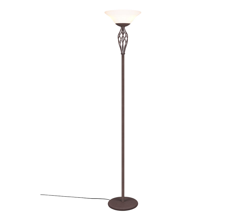 Een mooie vloerlamp van het merk Trio. Deze elegante vloerlamp is gemaakt van metaal en uitgevoerd in een roestkleur. Deze rustieke lamp kan goed worden toegepast in de woonkamer naast de bank of een fauteuil bijvoorbeeld. De vloerlamp heeft een witte glazen kap welke plaats biedt aan twee E27-fittingen die geschikt zijn voor een max. wattage van 60W. Deze lamp van Trio wordt exclusief lichtbronnen geleverd. U kunt hierdoor zelf bepalen hoeveel licht u wilt hebben. De armatuur beschikt over een voetschakelaar.