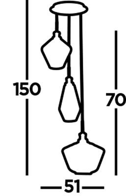 Een klassieke 3-lichts hanglamp uit de Mia collectie van het merk Searchlight. De messing lamp is gemaakt van staal en glas. De lamp is exclusief lichtbronnen en geschikt voor 3x 60 watt met E27 fitting. De Mia heeft 3 champagneglas bollen die elk een andere vorm hebben voor een speels effect. De lamp is bij installatie in hoogte te verstellen.