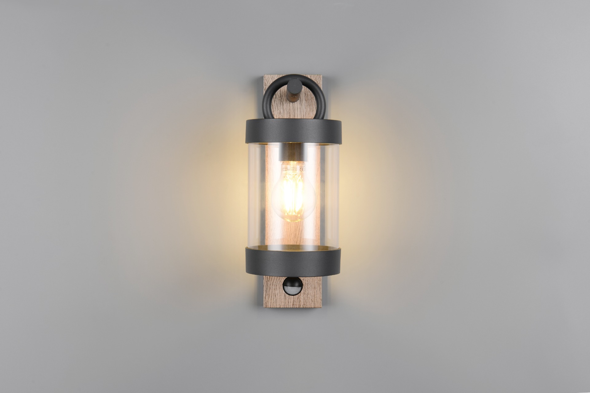 Een mooie wandlamp uit de buitencollectie van het merk Trio. De lamp heeft een modern met klassiek ontwerp dankzij de behuizing van gegoten aluminium in de kleur antraciet, gecombineerd met lichte houtaccenten. De Sambesi wordt geleverd exclusief lichtbron met één E27 fitting en is geschikt voor max. 28 watt. Deze armatuur schakelt automatisch aan en uit via een ingebouwde bewegingsmelder. Zodra iemand binnen een straal van 10 meter wordt gedetecteerd schakelt de lamp automatisch aan. De lamp heeft een IP44 classificatie, wat betekent dat hij bestand is tegen spatwater waardoor de wandlamp ideaal is voor buitengebruik. Door het moderne design zal de lamp overal goed tot zijn recht komen en zorgt u voor stijlvolle verlichting in uw tuin. Uitsluitend geschikt voor wandmontage. Daarnaast is er ook een Sambesi uitvoering zonder sensor voor een meer traditionele bediening.