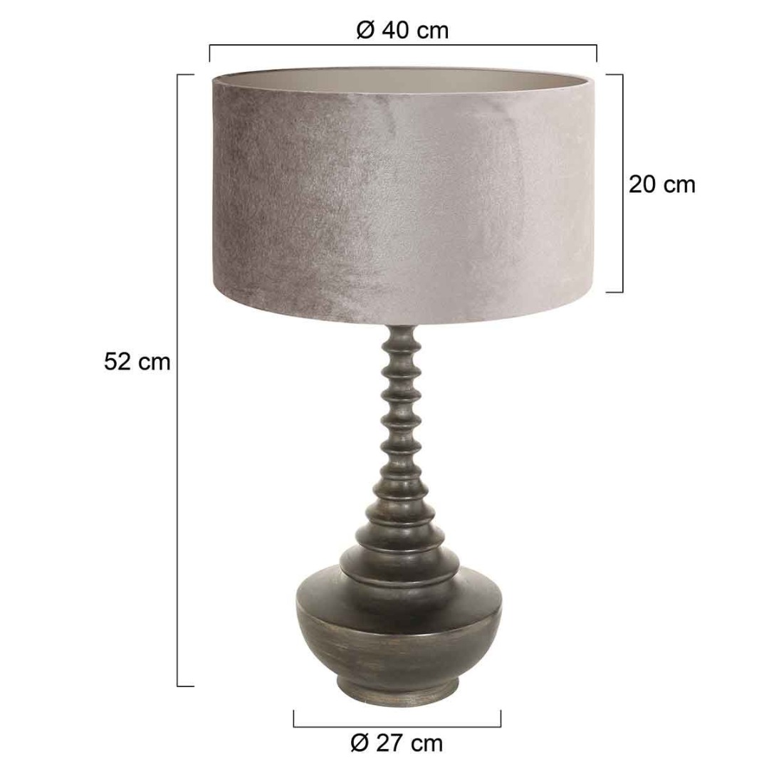 Deze klassieke tafellamp komt uit de Anne Light & Home Bois serie. De lamp is gemaakt van hout en textiel. De lamp heeft een donkerbruine, bijna zwarte, voet met zilveren/ grijze kap van velours. De zwaar houten voet is met de hand gemaakt. De lamp is dimbaar in combinatie met een externe dimmer en dimbare lichtbron. De lamp komt exclusief lichtbron en is geschikt voor E27 fitting en maximaal 40 watt.