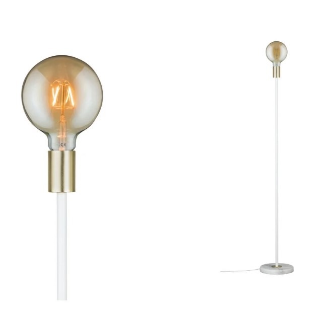 Prachtige witte vloerlamp uit de Nordin serie van Paulmann met een combinatie van witgrijs marmer en matgouden details. Erg leuk om te combineren met de andere lampen uit de Nordin serie. Wordt geleverd zonder lichtbron en heeft een E27 fitting geschikt voor max. 20W. De lamp is eenvoudig te bedienen met de aan-/uitschakelaar op het snoer.