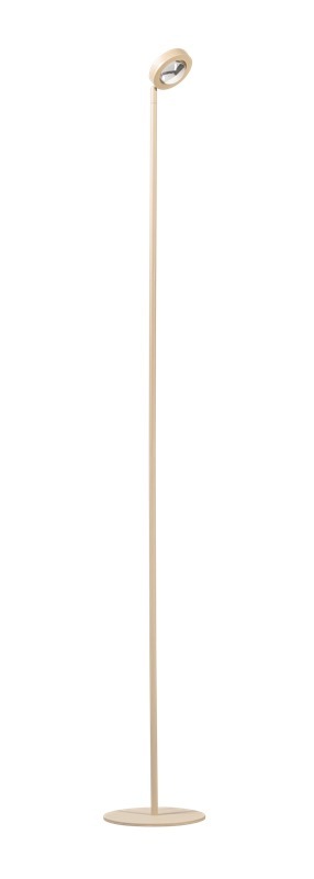 Een moderne vloerlamp van ETH. De vloerlamp heeft een geïntegreerde ledmodule van 9W met 653 lumen en een warme lichtkleur van 2700K. Bovendien is de lamp ook nog eens te dimmen in 3 standen door middel van de schakelaar op het snoer. Deze ronde kop van deze lamp (welke vrij richtbaar is) is uitgerust met een bol glas waardoor het licht mooi wordt verspreid en ook bijvoorbeeld goed geschikt is om dingen uit te lichten zoals een schilderij. Samen met de andere lampen uit dezelfde collectie maak je er één mooi geheel van. Deze vloerlamp heeft een prachtige, natuurlijke zandkleur.