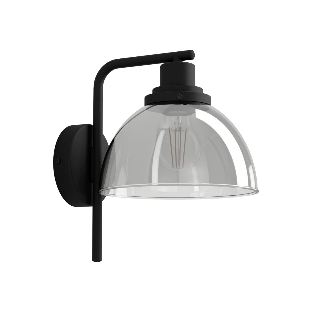 Een wandlamp uit de collectie van Eglo met een retro- moderne uitstraling.  Deze wandlamp is gemaakt van staal en gestoomd glas in de kleuren zwart en zwart-transparant. Deze lamp staat prachtig in de hal, woonkamer of slaapkamer. De lamp heeft een E27 fitting, wordt zonder lichtbron geleverd en is geschikt voor een wattage van max. 1x 60W.