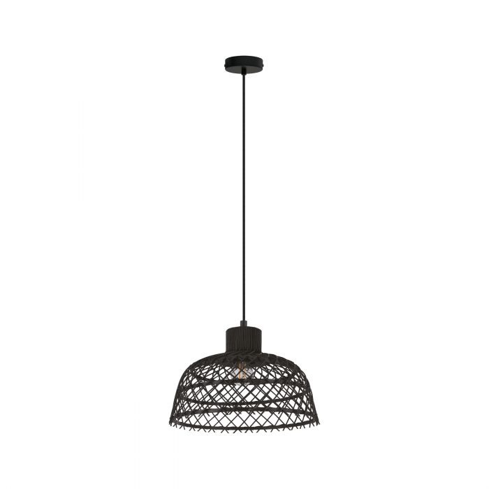 Een Trendy Hanglamp uit de collectie van Eglo. De lamp heeft een natuurlijke uitstraling doordat het materiaal van de kap van de lamp van heel hout is gemaakt. De kleur is zwart. Deze lamp is een mooi voorbeeld van een lamp die je in je slaapkamer of woonkamer kan hangen.  De lamp wordt exclusief lichtbron geleverd en is geschikt voor een wattage van max. 1x 40W (LED).