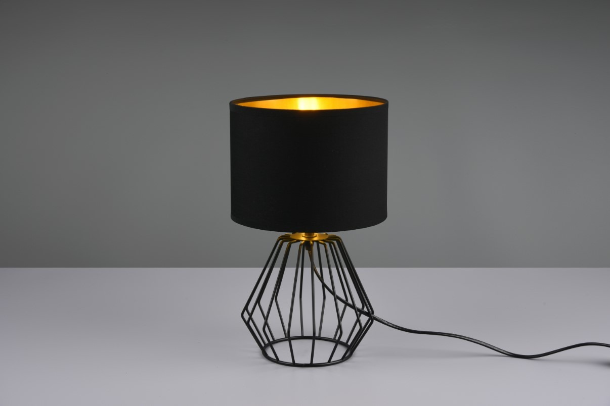 Een tafellamp van het in Duitsland opgerichte verlichtingsmerk Trio. Een luchtige zwart metalen constructie doet dienst als lampvoet. De geometrische vormen passen in vrijwel ieder interieur. De grafische lijnen sluiten aan bij strakke, stoere, sobere of vintage meubelen. De eveneens zwarte kap welke gemaakt is van textiel heeft een diameter van 20 cm. Dit schemerlampje kan goed worden geplaatst op een bureau, kast of bijzettafel, in de woonkamer of hal bijvoorbeeld. De lamp wordt exclusief lichtbron geleverd. U kunt hierdoor zelf bepalen hoeveel licht u wilt hebben. De lamp heeft één E14-fitting die geschikt is voor een max. wattage van 40W en beschikt bovendien over een snoerschakelaar op een snoer met een lengte van 150cm.
