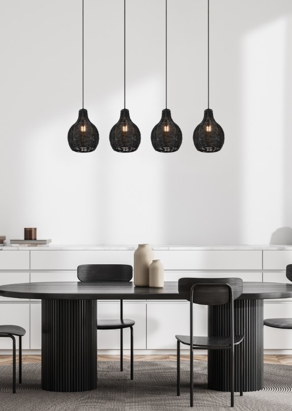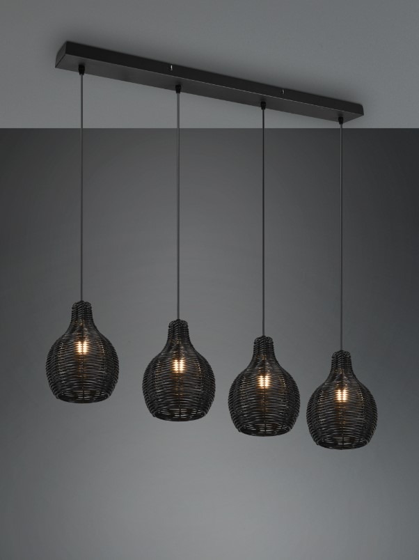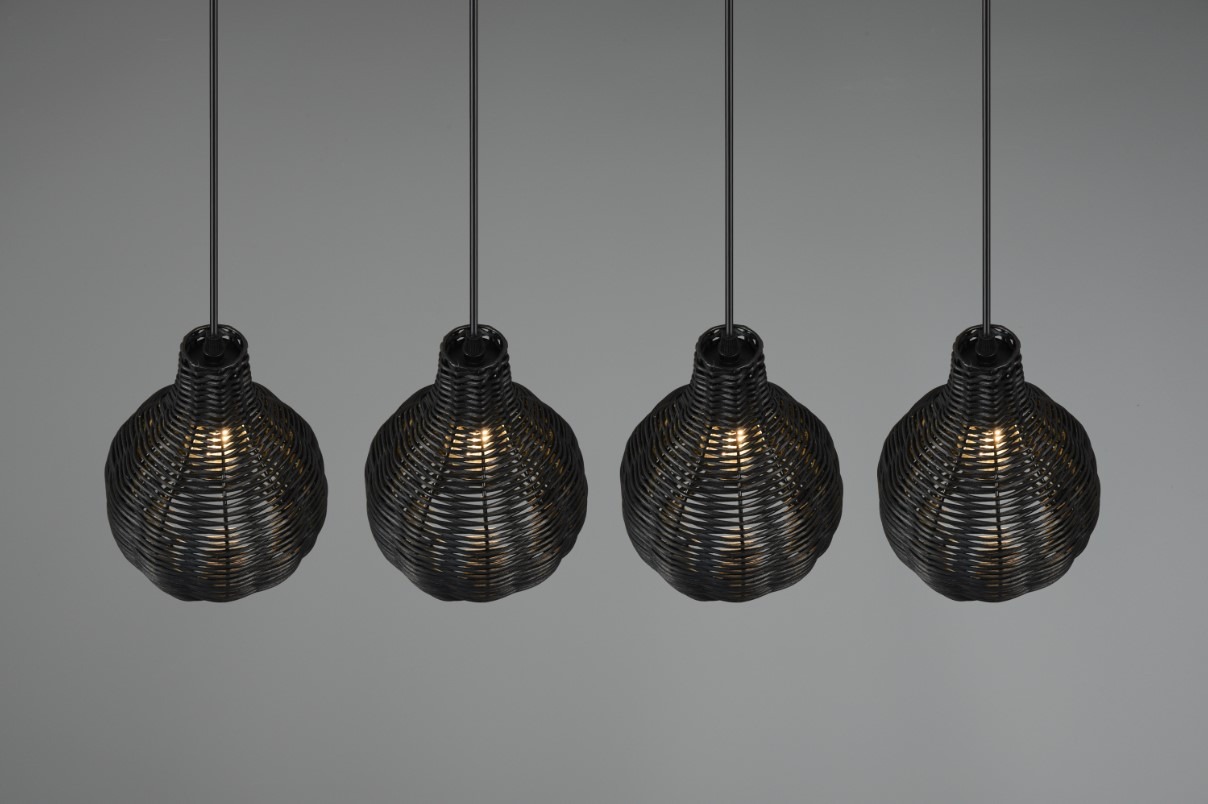 Een hanglamp uit de Reality-collectie van Trio welke naadloos in de populaire Boho-trend past. Het rotan vlechtwerk straalt gezelligheid uit boven de eettafel zelfs wanneer het licht uitgeschakeld is. De peervormige kappen hebben een diameter van 17 cm en bieden plaats aan één E14-fitting. Deze armatuur wordt exclusief lichtbronnen geleverd. De lichtbron mag maximaal 30W zijn. De hanglamp is aanpasbaar in hoogte.