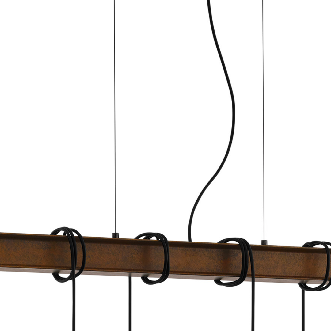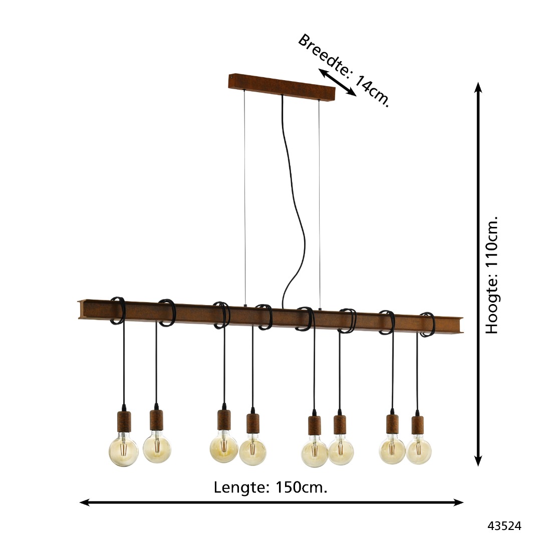 Een hanglamp uit de lighting collectie van Eglo met een vintage uitstraling. De lamp is gemaakt van staal en heeft een antiek-bruine kleur. De lamp heeft E27-fittingen en wordt exclusief lichtbronnen geleverd. Het is geschikt voor een max. wattage van 8x 60W. De lamp heeft een bijzondere vorm, waardoor het een mooie, unieke uitstraling geeft aan je huis. Het is een vrij grote lamp die mooi zou staan boven bijvoorbeeld een grote rechthoekige eettafel.