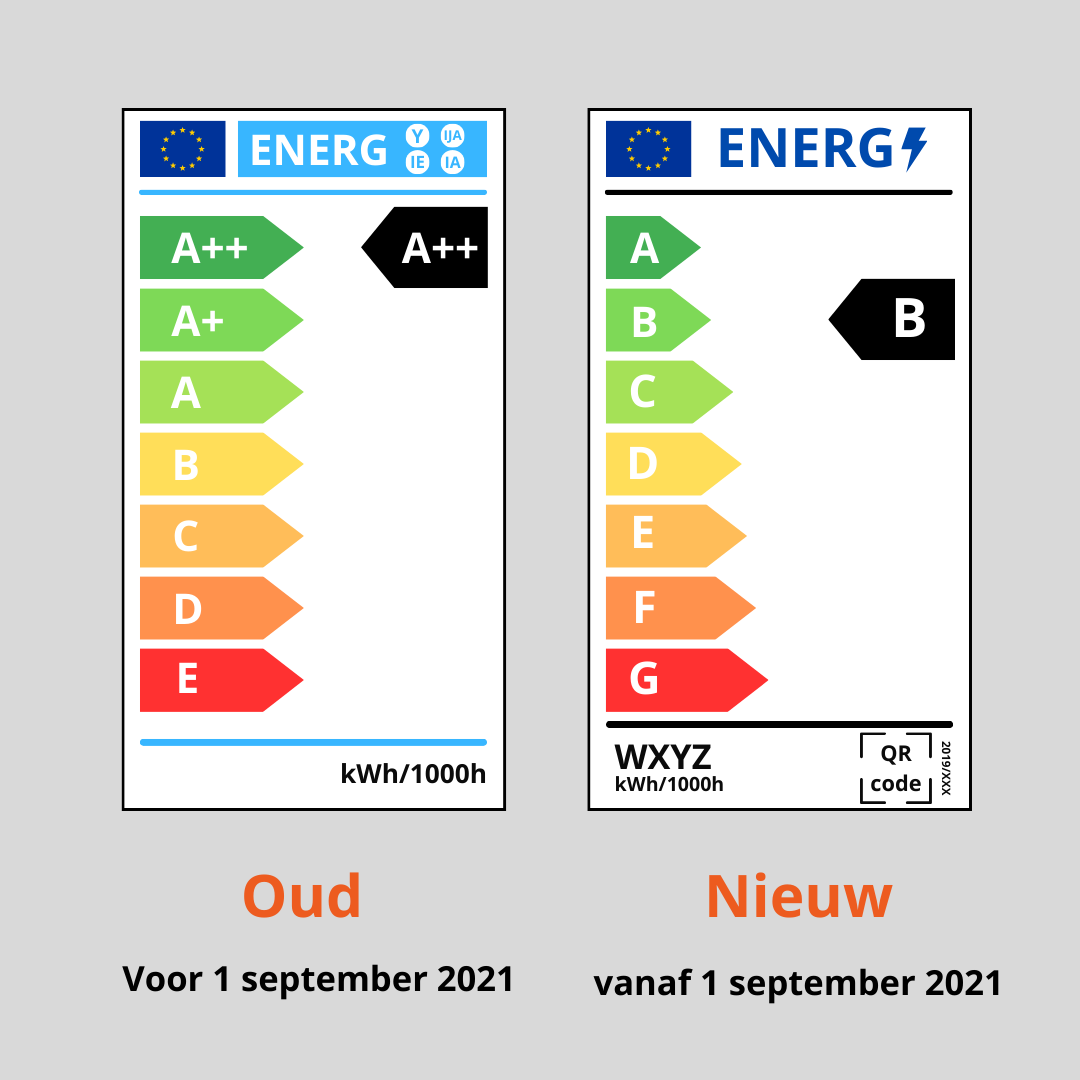 Sinds september 2021 zijn de energie labels vereenvoudigd. Nu variëren de labels van A tot G, waarbij A staat voor de meest energiezuinige optie en G voor de minst zuinige. Deze verandering kwam doordat veel consumenten in de war raakten door de vele plusjes op de oude labels. Het aantal energiezuinige lampen op de markt nam toe, wat heeft bijgedragen aan deze verwarring. Belangrijk om te benadrukken is dat deze verandering niet betekent dat producten minder zuinig zijn dan voorheen. Er zijn ledlampen met het energielabel F, dit lijkt een mindere keuze maar deze nog steeds zeer energiezuinig. Het nieuwe F-label is vergelijkbaar met het oude energie label A+. Het doel van het nieuwe energielabel is ook om fabrikanten aan te moedigen om in de toekomst juist nieuwe technologieën te ontwikkelen die nog energiezuiniger zijn.
